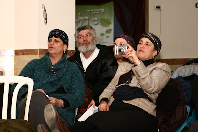 Miriam was also in the photography/videotaping course I took. There were three of us from Shiloh in the course, and we were among the very few who showed up to all of the sessions, all three sessions-all three of us. We also were the only ones, if I'm not mistaken, to always try to do and bring in assignments. Miriam is on the yishuv more than I am and has become official photographer. She has impressive cameras and a tripod. I'm more a "dabbler." And for equipment, I have my bli eyin haraa, Canon 620 and a pouch to carry it in. And there's a neck strap for the heavier assignments when I want it easily grabbable.